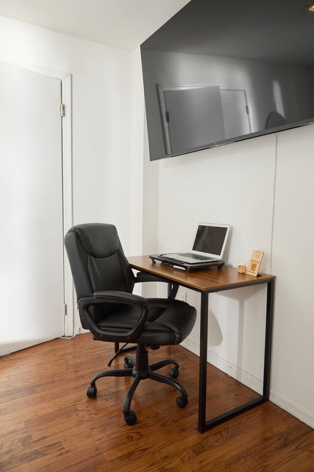 Comfy Room in the Heart of Hell’s Kitchen Experience the charm and excitement of Hell’s Kitchen with a stay in this cozy, stylish room located in a classic dark green building. Just steps from Times Square, Hudson Yards, and Broadway, this inviting space is perfect for unwinding after a day of exploring the city. The Space: Bedroom: Relax in a plush full bed with soft pillows, surrounded by warm décor and unique art pieces that reflect the creative spirit of the neighborhood. Closet Amenities: Enjoy the convenience of a mini fridge and coffee maker – ideal for starting your day or winding down at night. Living Area: Kick back with a 50” TV in your private space, perfect for streaming your favorite shows after sightseeing. Bathroom: The bathroom is shared with a small number of guests and is cleaned regularly to maintain a fresh, comfortable environment. Extras: Dedicated desk for work or personal projects. Keyless entry for hassle-free check-in and secure access. Located in a lively, friendly neighborhood with endless restaurants, bars, and attractions just steps away. A Kind Note: Hell’s Kitchen is vibrant and energetic, and while the room offers a peaceful escape, you may hear occasional noise from the city or neighboring apartments. We are 3 blocks away from Times Square. Perfect for solo travelers or couples seeking a comfy, stylish, and centrally located retreat in the heart of New York City