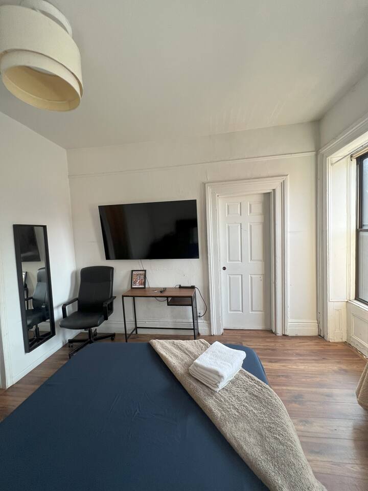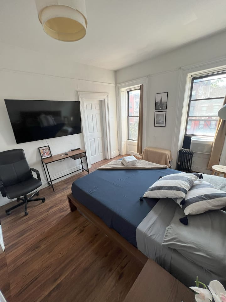 Experience the heart of Hell's Kitchen! Our spacious room features a premium LCD screen, powerful air conditioning, a window overlooking the street, and a desk for working. Stay connected with a high-speed internet connection. Explore the vibrant dining, entertainment and shopping options in the surrounding area. Book now for an unforgettable stay in New York!